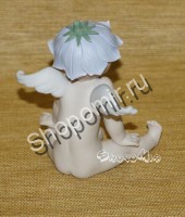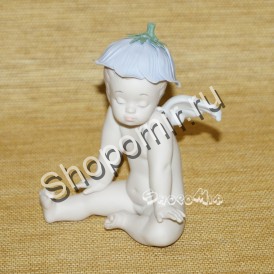 Маленький «Амурчик задумчивый» способен вызвать в душе теплую волну душевности и умиления. Обнаженный малыш сидит, уперев в коленки пухлые ручки, печально свесив голову. Его прикрытые глаза дают лишь скромный намек на те мысли, что витают под чудесным чепчиком из цветочной чашечки. В его душе рождаются самые удивительные и порой несбыточные желания, и от этого пелена легкой грусти окутывает всю фигурку.