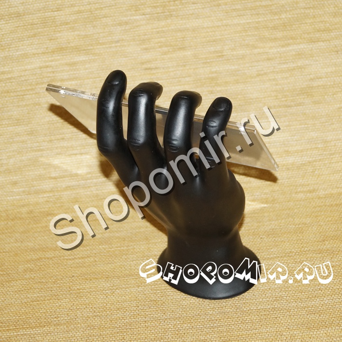 Рука, крепко удерживающая фоторамку, выполнена из черного прорезиненного пластика. Сама рамка для фотографии - из акрила.