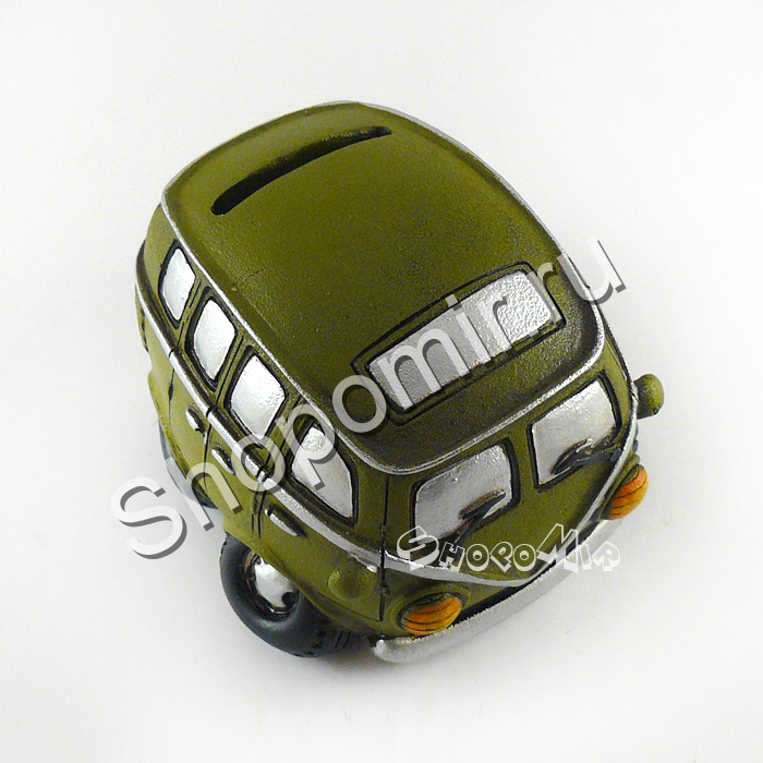 Маленькая скромная копилка всегда нужна и дома, и на работе. В нее можно сбрасывать все ненужные монетки и таким незаметным образом скопить довольно приятную сумму. Но чтобы вещица не портила общий вид интерьера, выбирать изделие следует скромное, но оригинальное. К примеру такое, как копилка «Ретро автобус» непритязательного оттенка хаки.