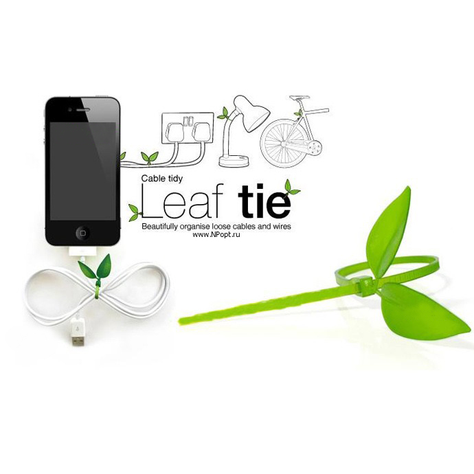 Тоненькие пластиковые хомутики выполнены в виде зеленых веточек, венчающихся листочком, помогут упорядочить длинные шнуры, и внесут приятную изюминку в рабочую атмосферу.