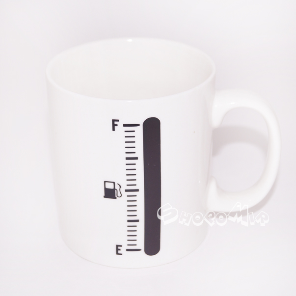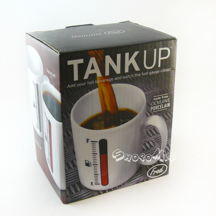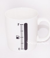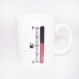Кружка "ЗАПРАВКА" позволяет определить уровень напитка и его температуру даже на расстоянии - достаточно взглянуть на уровень заполнения "бака". Если в кружку налить напиток, температура которого выше 70 градусов, на кружке красным цветом отобразиться уровень налитого напитка. По мере убывания напитка или его остывания индикация на кружке возвращается в исходное состояние - "пустого бака".