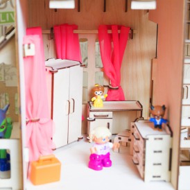 Высота каждого этажа: 21 см, что позволяет свободно играть ручками в доме. Домик и мебель подходят для кукол высотой до 18 см.