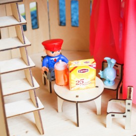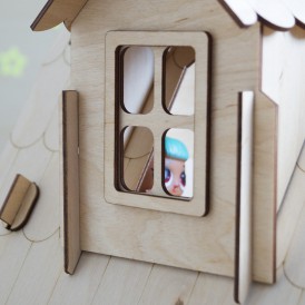 При сборке детали соединяются между собой, как конструктор в пазы. После сборки дом можно покрасить или покрыть лаком и даже поклеить обои, прекрасное "поле" для творчества.