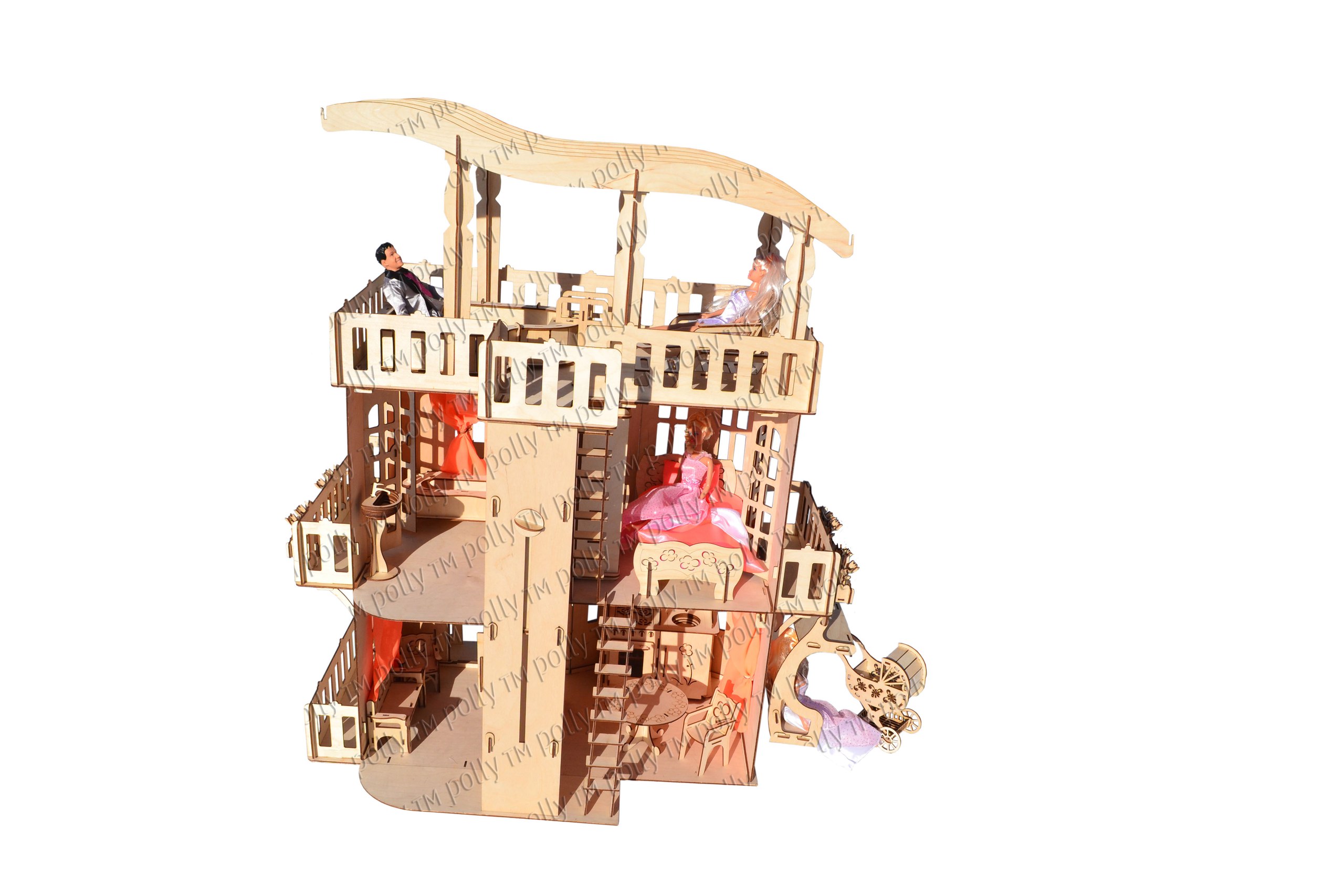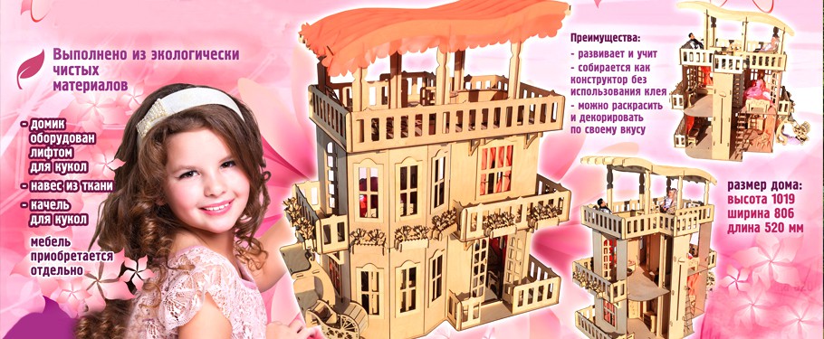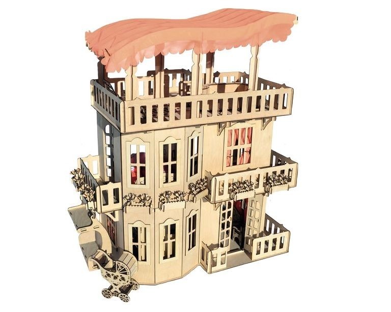 Также на выбор есть другой кукольный дом из фанеры для Барби.