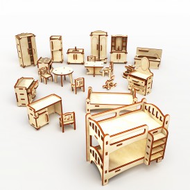 В набор входит кукольная мебель для следующих комнат: