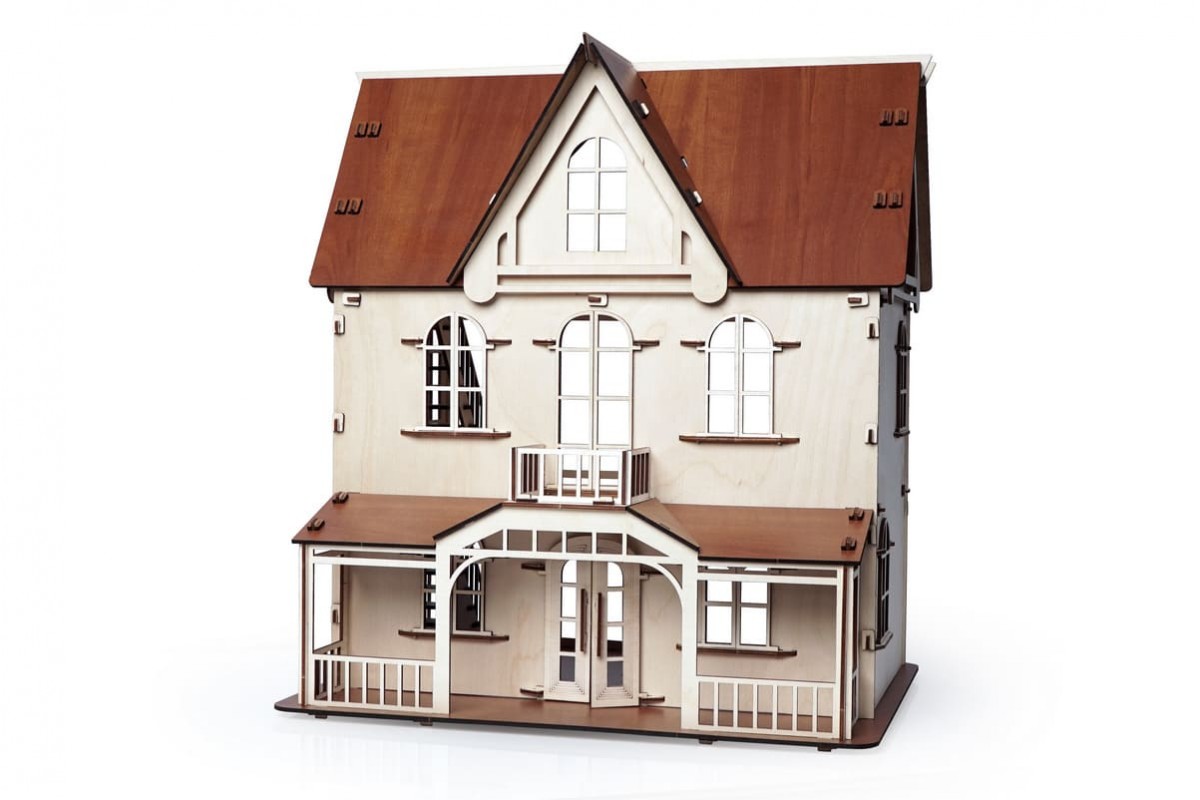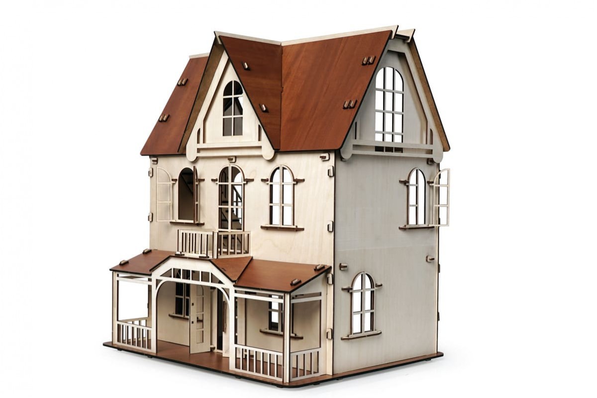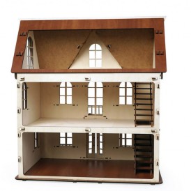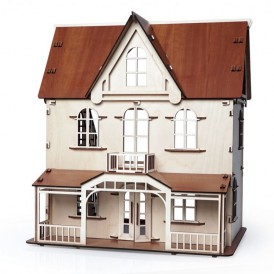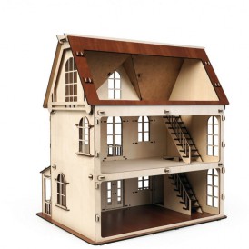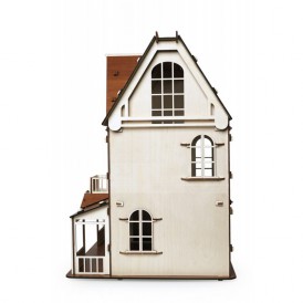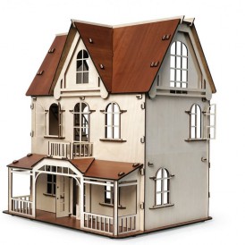 Изящный дом состоит из 2-х этажей и мансарды. Две лестницы на каждый этаж, фигурные окна с затейлевыми вензелями, темный пол и крыша - разве не чудо!