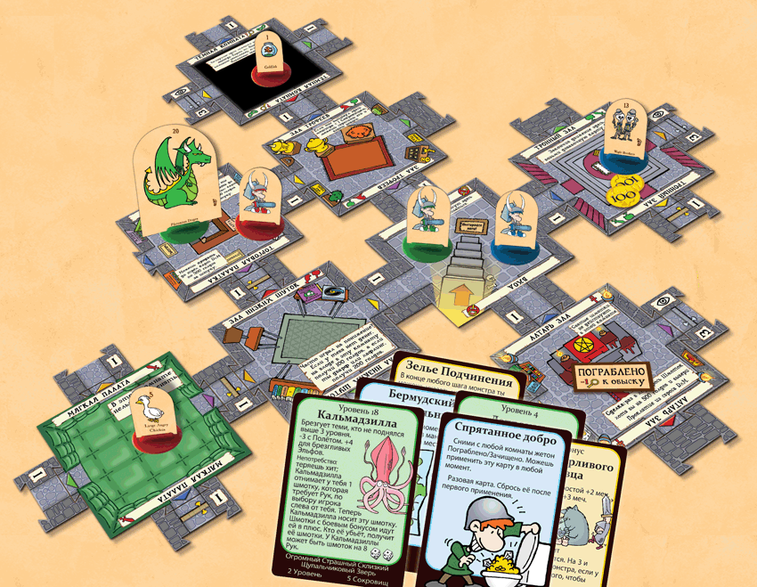 И ещё один нюанс: Манчкин. Квест – это абсолютно реальное подземелье. И выход из него тоже вполне реальный. Поэтому рано радоваться, набрав десять уровней! Теперь попробуйте выйти из подземелья живым! Путь к спасению лежит через дверь, охраняемую монстром двадцатого уровня.