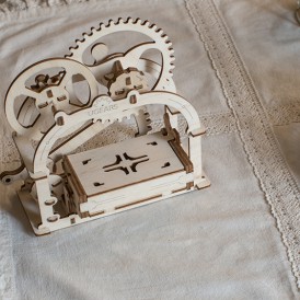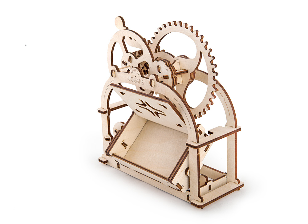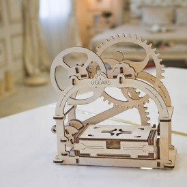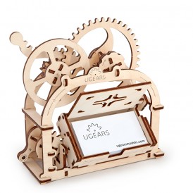 Иногда возникает желание, а порой просто необходимо, чтобы на рабочем столе была неординарная деталь, которая бы привлекала внимание клиентов или партнеров. Мы предлагаем хранить визитки в шкатулке UGEARS. Шкатулка необычная и стильная, крышка открывается автоматически, при нажатии на рычажок сбоку, шестерни двигаются и крышка поднимается. В комплекте две крышки, с вырезом под визитки и без выреза.