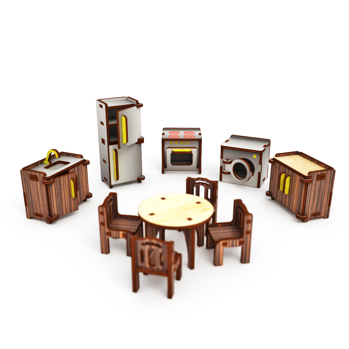 Дополни домик красивой мебелью. Набор кухня состоит из 10 предметов. Домик для принцессы будет еще уютнее, если его украсить такой раскрашенной мебелью.