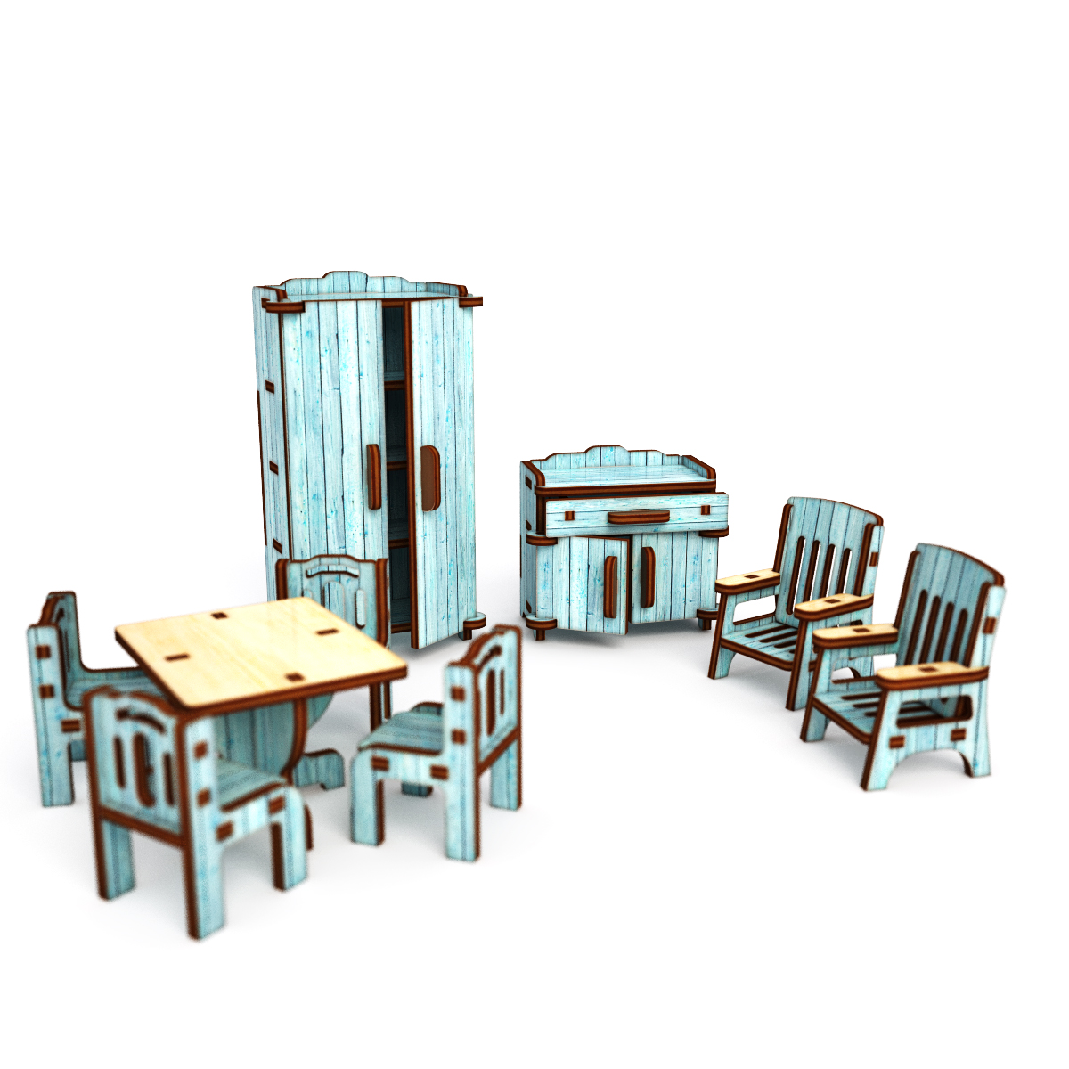 Все элементы выполнены из фанеры, 3 мм. Отшлифованы, без острых углов. Экологически чистый материал: березовая фанера