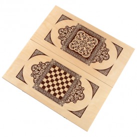 изготовлен из натурального дерева, на крышках – изящный орнамент. Нарды имеют