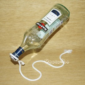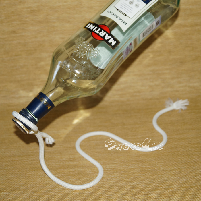 Вещица имеет простую форму нейлонового шнурка, закрученного незатейливой петлей. В такой подставке бутылка, словно подчиняясь немыслимому волшебству, по-настоящему парит в воздухе.