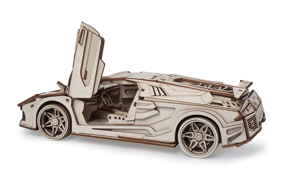 Предлагаем к вашему вниманию конструктор "машина деревянная". У собранной модели вращаются колеса, открываются двери, крышка отсека двигателя и багажник. При желании игрушку можно раскрасить акриловыми или гуашевыми красками.